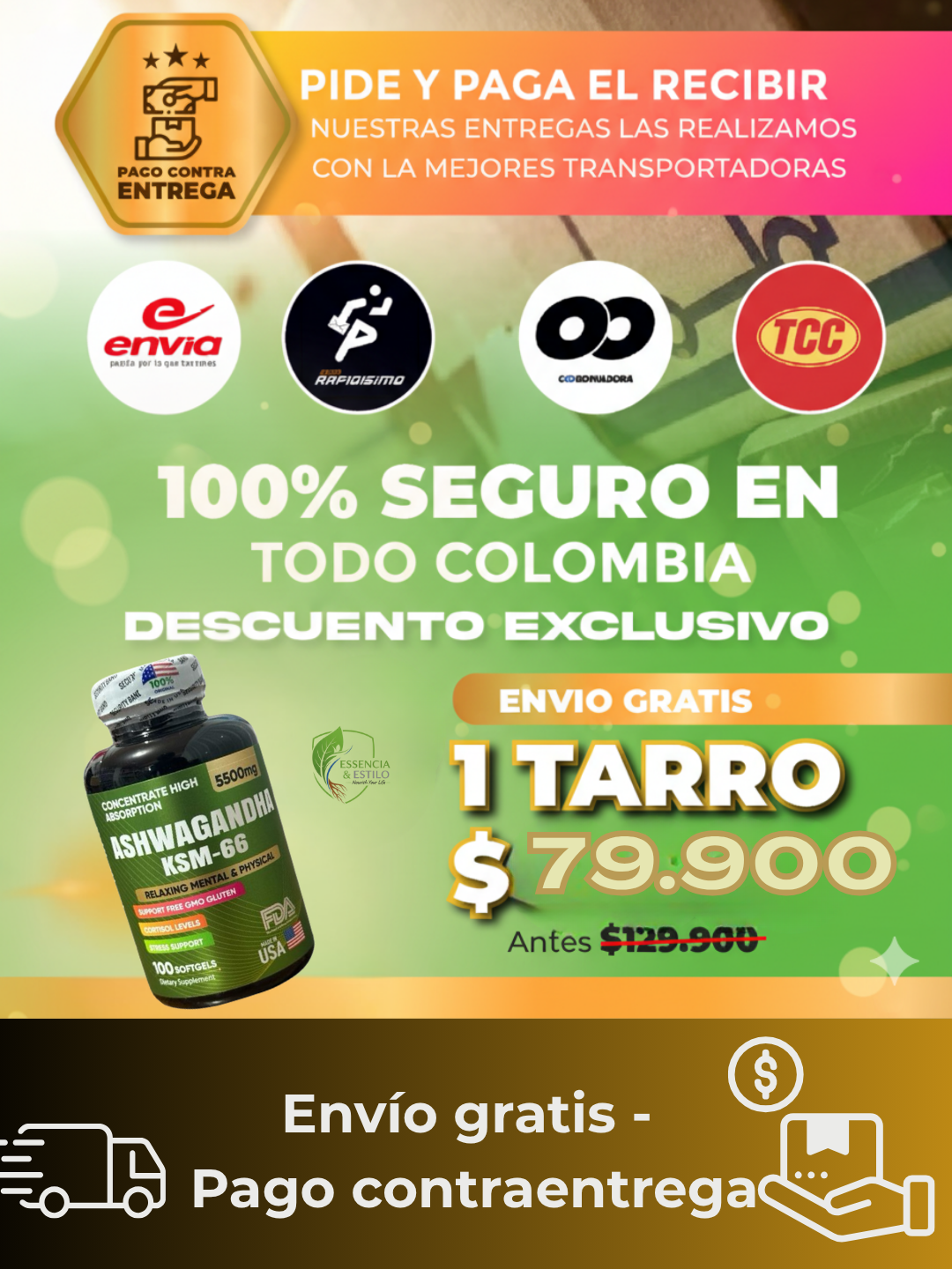 Laura desde Medellín compró 1 frasco de Ashwagandha KSM-66 – 100 cápsulas hace 5 minutos